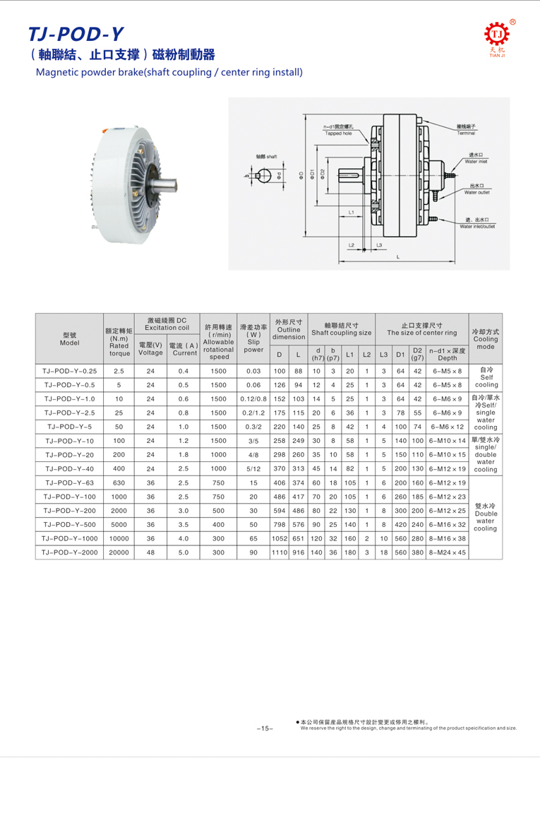 東莞天機(jī)傳動(dòng)(臺(tái)灣天機(jī)牌)水冷磁粉剎車器和風(fēng)冷磁粉制動(dòng)器都是工業(yè)制動(dòng)器中的一種,使用的DC24V直流電壓,操作更加安全,使用簡單,維護(hù)容易。