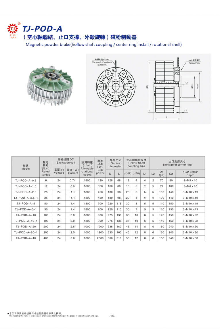 6、外殼旋轉(zhuǎn)磁粉制動器試運轉(zhuǎn)前,請詳細(xì)閱讀東莞天機傳動臺灣品牌產(chǎn)品使用說明書;