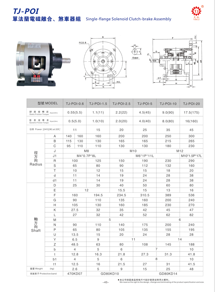 東莞天機(jī)傳動(dòng)(臺(tái)灣天機(jī)牌)是生產(chǎn)單法蘭電磁離合剎車器,法蘭式電磁離合剎車器的廠家,全稱為POI型單法蘭電磁離合剎車器組合體,主要由一個(gè)TJ-A1型電磁離合器與一個(gè)TJ-B1型電磁制動(dòng)器組合的集成組體。電磁離合剎車器應(yīng)用廣泛、結(jié)構(gòu)簡(jiǎn)易、可高頻運(yùn)轉(zhuǎn)、使用安全等。