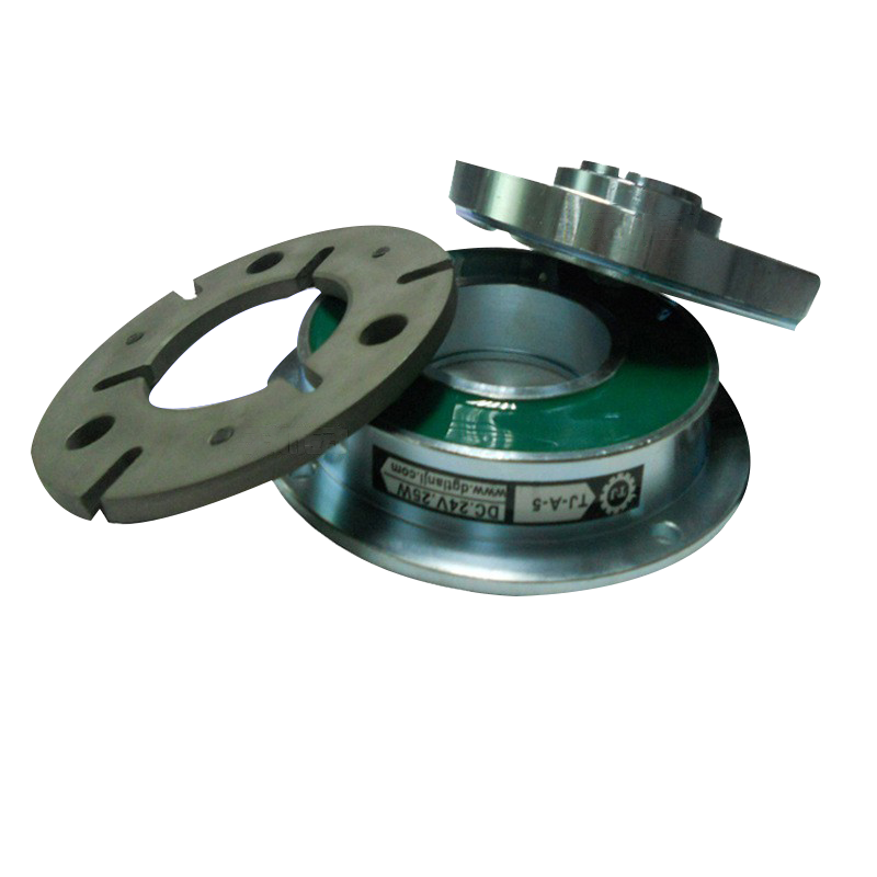 電磁離合器可同軸安裝,也可以分軸安裝,軸向必須固定,主動部分與從動部分均不允許有軸向竄動,分軸安裝時,主動部分與從動部分軸之間同軸度應(yīng)不大于0.lmm。其正常溫升為40℃,極限熱平衡時的工作溫度不允許超速100℃,否則線圈與摩擦部分容易發(fā)生破壞。