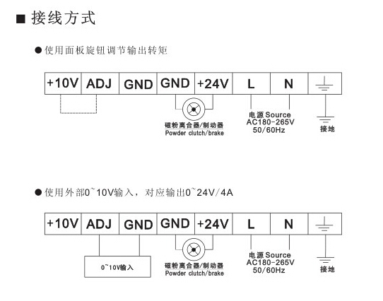 張力控制器可外部信號(hào)控制(0~10V) 控制方式為脈寬調(diào)制切換式調(diào)節(jié)系統(tǒng)。