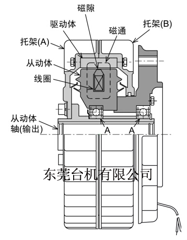 空心軸外殼旋轉(zhuǎn)磁粉剎車器運行:
