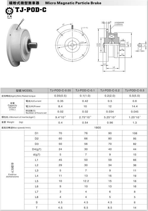 小型磁粉制動(dòng)器國內(nèi)標(biāo)準(zhǔn)規(guī)格:TJ-POD-C-0.05KG、0.1Kg、0.2KG、0.5KG。其中“KG”可以轉(zhuǎn)換為表“Nm”的單位,即1KG≈1Nm。